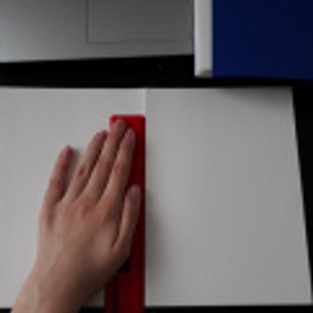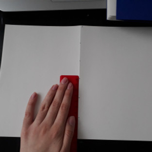 To do this book binding the technician instructed to create 5 section which would have five folds in them. To fold them, first use your hands then the Bone Folder, fold from the center outwards, this is to avoid distorting the grain.