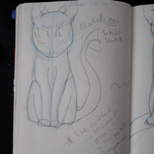 To be honest I really like this and made me a bit more aware on how cat’s legs fold and maybe how to draw them, but it also made a character representing my mum a bit too creepy and threatening than she actually is, but I couldn’t keep it out of my head. Looking at the sketches inside the book I also noticed how his sketches showed cats like round and puffy, so I tried it, but I find them unsettling even more than the one before.
